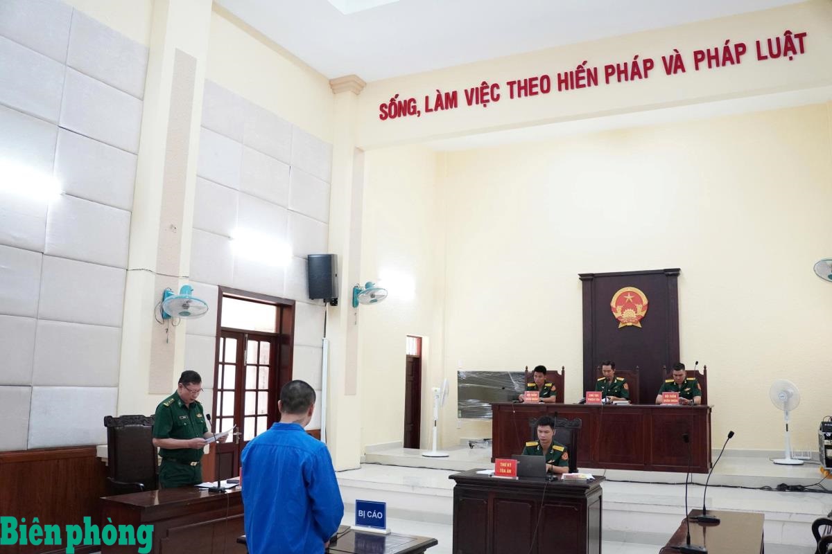 Kiểm sát viên Viện Kiểm sát quân sự khu vực 2 Bộ đội Biên phòng thực hành quyền công tố, kiểm sát xét xử tại phiên tòa vụ án cố ý gây thương tích. Ảnh: Nguyễn Văn Tài