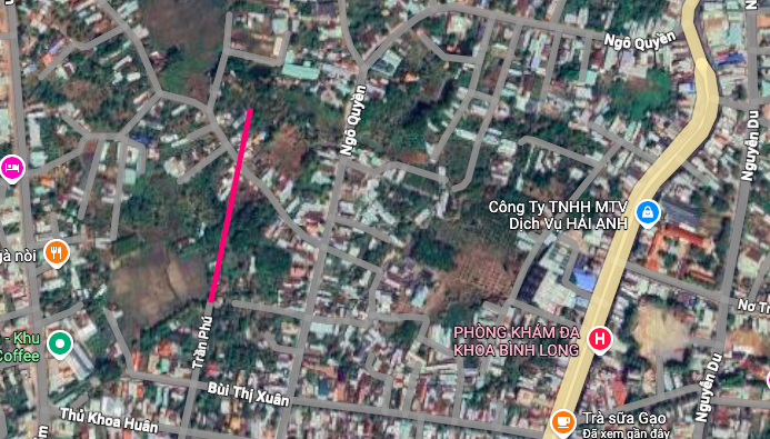 Đường sẽ mở theo quy hoạch ở phường Bình Long theo Bản đồ điều chỉnh quy hoạch định hướng giao thông thị xã Bình Long đến năm 2030. (Đường kẻ màu hồng).