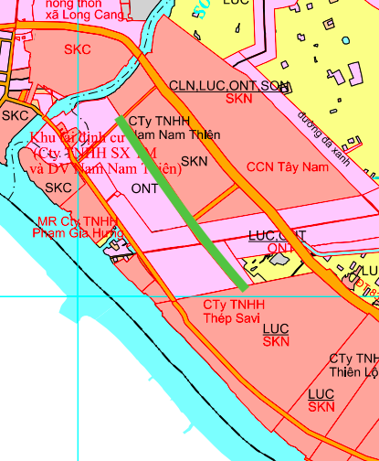 Đường sẽ mở theo quy hoạch ở xã Mỹ Lệ theo bản đồ điều chỉnh quy hoạch sử dụng đất thời kỳ 2021 - 2030 huyện Cần Đước, tỉnh Long An (đường kẻ màu xanh lá).