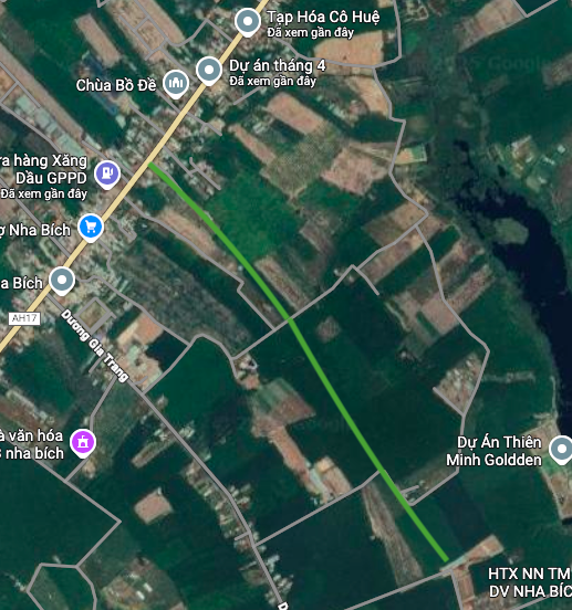 Đường sẽ mở theo quy hoạch ở xã Nha Bích theo bản đồ điều chỉnh quy hoạch sử dụng đất đến năm 2030 thị xã Chơn Thành, tỉnh Bình Phước.(Đường kẻ màu xanh lá).