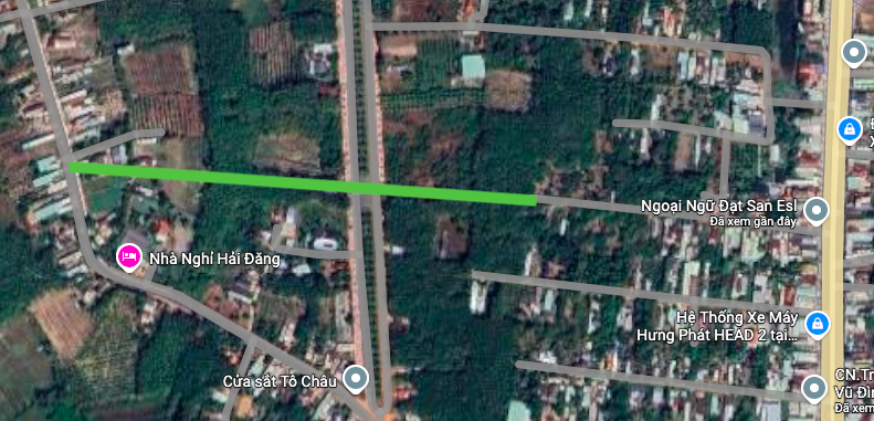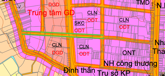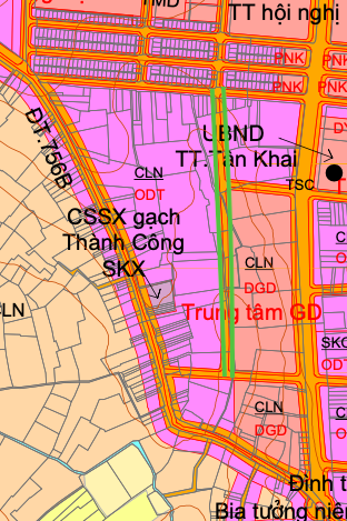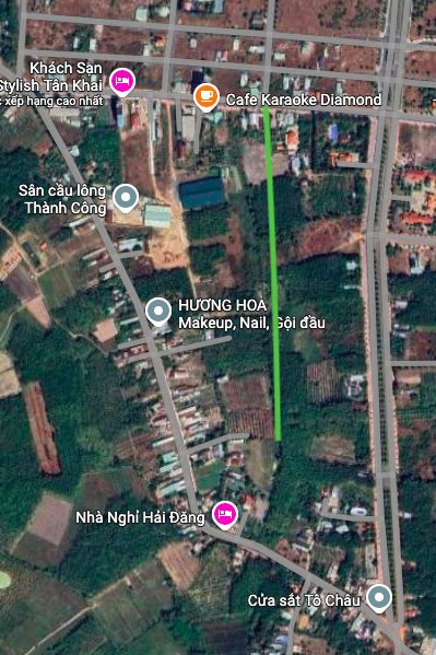 Đường sẽ mở theo quy hoạch ở xã Tân Khai theo bản đồ quy hoạch sử dụng đất đến năm 2030 huyện Hớn Quản (cũ), tỉnh Bình Phước.(Đường kẻ màu xanh lá).