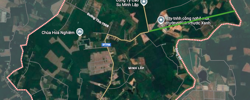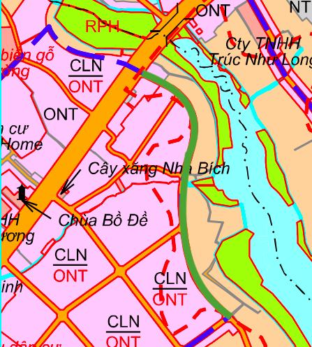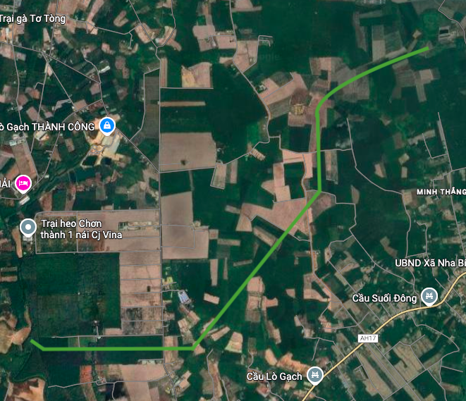 Đường sẽ mở theo quy hoạch ở xã Nha Bích theo bản đồ điều chỉnh quy hoạch sử dụng đất đến năm 2030 thị xã Chơn Thành, tỉnh Bình Phước.(Đường kẻ màu xanh lá).