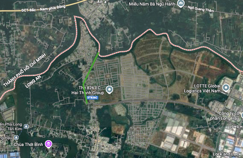 Tuyến đường mới cắt qua Đường tỉnh 826C trên bản đồ điều chỉnh quy hoạch sử dụng đất đến năm 2030 huyện Cần Giuộc.