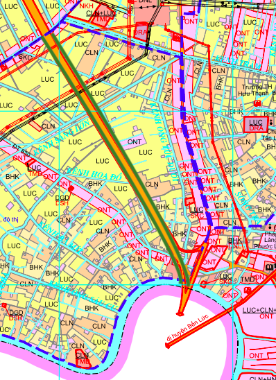 Tuyến đường sẽ mở được thể hiện bằng đường kẻ màu xanh lá trên bản đồ điều chỉnh quy hoạch sử dụng đất huyện Đức Hòa giai đoạn 2021 - 2030.
