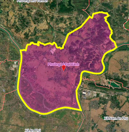 Phường Lê Đại Hành trên bản đồ Google vệ tinh.