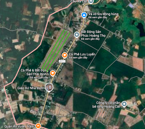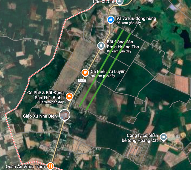 Tương tự ở phía tây của trục AH17, quy hoạch cũng ghi nhận các đoạn đường song song mới với chiều dài khoảng 1 km. Vị trí các tuyến này cũng nằm gần Nhà thờ Nha Bích, tạo sự đối xứng và đồng bộ cho hạ tầng giao thông khu vực.