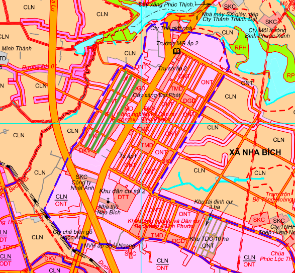 Đường sẽ mở theo quy hoạch ở xã Nha Bích theo bản đồ điều chỉnh quy hoạch sử dụng đất đến năm 2030 thị xã Chơn Thành, tỉnh Bình Phước.