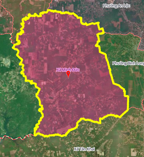 Xã Minh Đức là một trong những đơn vị hành chính cấp xã quan trọng với vị trí địa lý thuận lợi. Phía bắc xã giáp xã Lộc Thành và phường An Lộc; phía đông giáp phường Bình Long; phía nam giáp xã Tân Khai và phía tây tiếp giáp xã Tân Hòa. Theo định hướng phát triển hạ tầng, khu vực này sẽ có những thay đổi đáng kể về mạng lưới giao thông đường bộ.