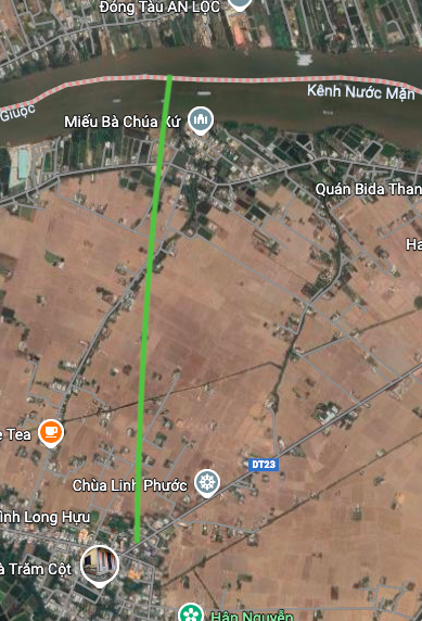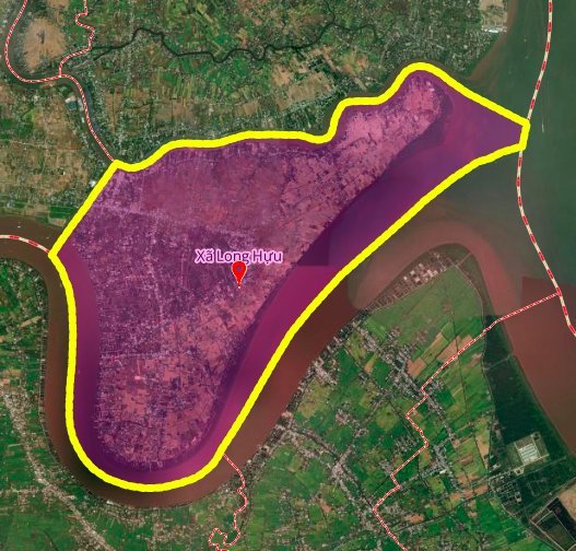 Sơ đồ tuyến đường sẽ mở theo quy hoạch ở xã Long Hựu. (Ảnh chụp từ Google Map).