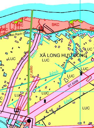 Đường sẽ mở theo quy hoạch ở xã Long Hựu theo bản đồ điều chỉnh quy hoạch sử dụng đất thời kỳ 2021 - 2030 huyện Cần Đước, tỉnh Long An. (Đường kẻ màu xanh lá).