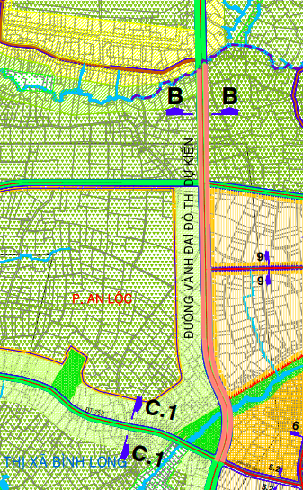 Đường sẽ mở theo quy hoạch ở phường Bình Long theoBản đồ điều chỉnh quy hoạch định hướng giao thông thị xã Bình Long đến năm 2030. (Đường kẻ màu hồng).