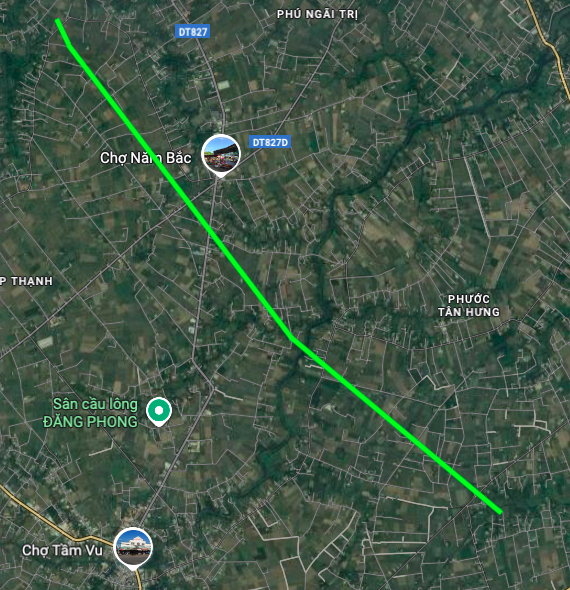 Hướng tuyến đường mới kết nối Đường tỉnh 827D và đường Trần Văn Giàu theo quy hoạch.