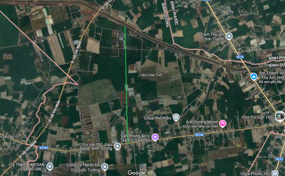 Tuyến đường sẽ mở ở trong phạm vi xã Trừ Văn Thố trong tương lai theo bản đồ quy hoạch sử dụng đất đến năm 2030 huyện Bàu Bàng.