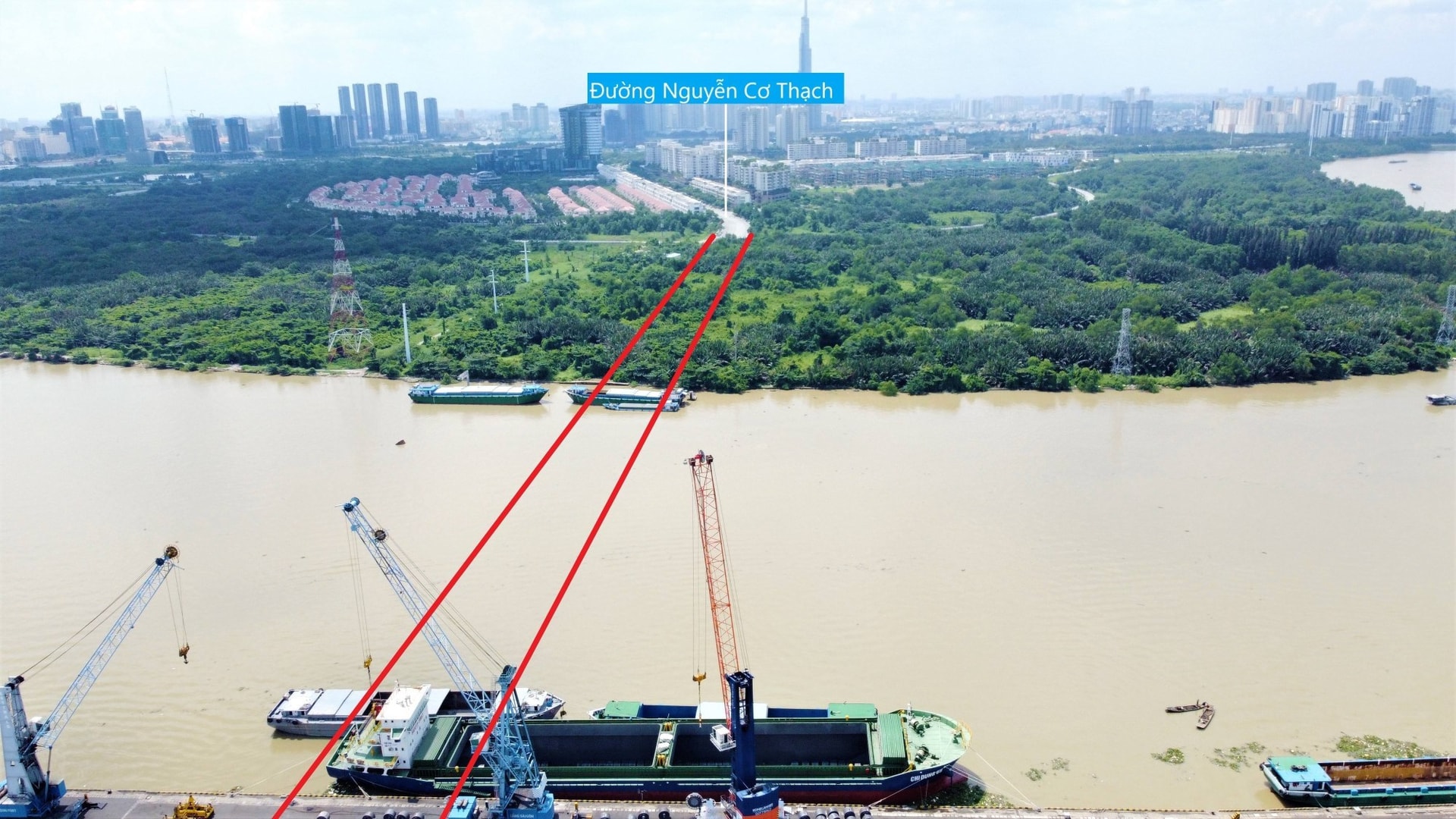 Vị trí làm cầu Cát Lái. (Ảnh chụp từ báo cáo ĐTM dự án).
