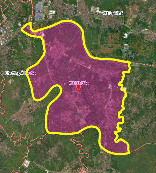 Xã Hà Bắc trên bản đồ Google vệ tinh.