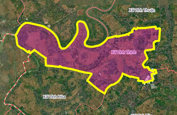 Xã Vĩnh Thịnh trên bản đồ Google vệ tinh.