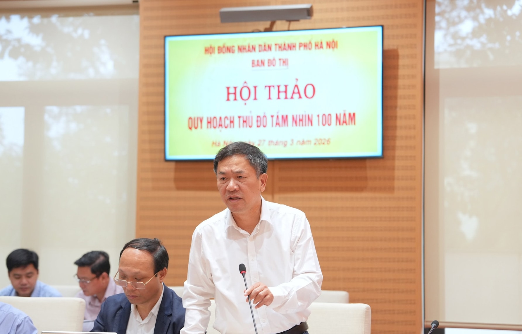 Tại hội thảo, báo cáo tóm tắt về tình hình triển khai lập Quy hoạch tổng thể Thủ đô Hà Nội tầm nhìn 100 năm, Giám đốc Sở Quy hoạch - Kiến trúc Nguyễn Trọng Kỳ Anh cho biết, việc lập Quy hoạch tổng thể Thủ đô tầm nhìn 100 năm được triển khai từ đầu năm 2026, dựa trên Nghị quyết số 02-NQ/TW của Bộ Chính trị, Luật Thủ đô và các định hướng chỉ đạo của Trung ương, Chính phủ. Quy hoạch kế thừa các đồ án trước đây, huy động chuyên gia trong nước và quốc tế; được Hội đồng thẩm định xem xét, nhằm phát triển Thủ đô vượt trội, bền vững, lấy con người làm trung tâm, đồng thời giữ gìn văn hóa và bản sắc.