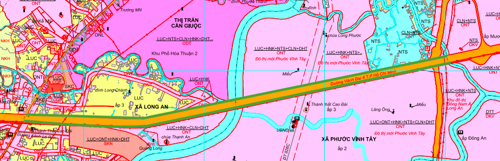 Lộ trình dự kiến của đường Vành đai 4 TP.HCM qua xã Phước Vĩnh Tây theo bản đồ quy hoạch sử dụng đất huyện Cần Giuộc đến năm 2030.