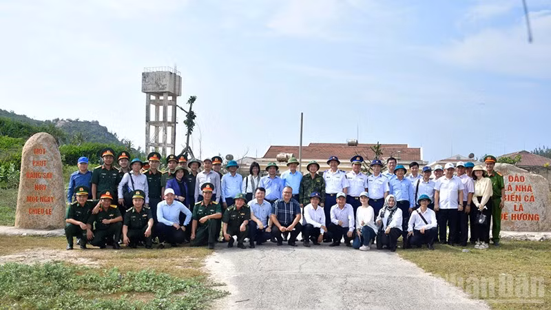 Các đại biểu chụp ảnh lưu niệm trên xã đảo Nhơn Châu.