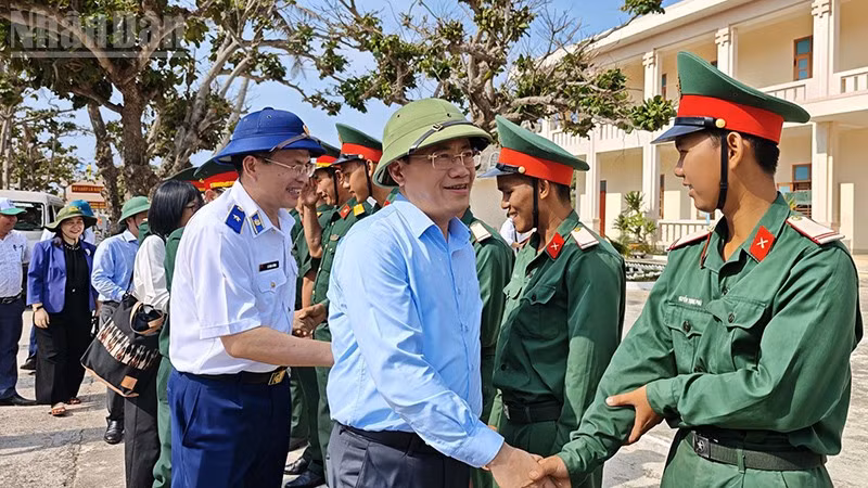 Lãnh đạo tỉnh Gia Lai và Tư lệnh Cảnh sát biển Việt Nam thăm đơn vị quân đội đóng quân trên xã đảo Nhơn Châu.