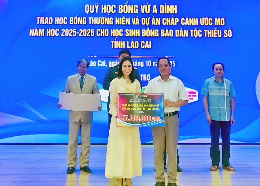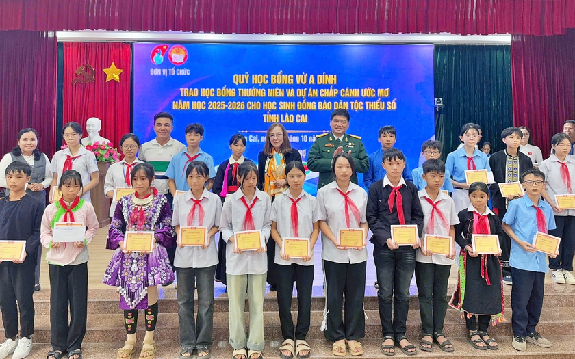 Quỹ học bổng Vừ A Dính đã trao 105 suất học bổng cho các em học sinh dân tộc thiểu số thuộc 9 xã, phường khu vực biên giới của tỉnh Lào Cai. Ảnh: Minh Đức