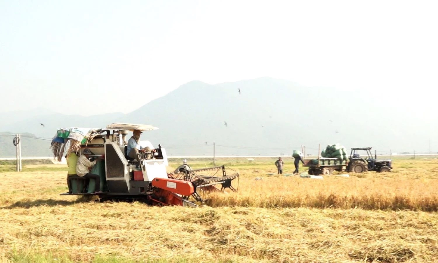 Nông dân xã Vạn Ninh thu hoạch lúa vụ đông xuân.