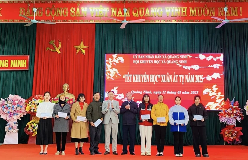 Tại chương trình Tết khuyến học Xuân Ất Tỵ năm 2025, đại diện Hội Khuyến học tỉnh Thanh Hóa đã trao thưởng cho các tập thể, cá nhân có thành tích trong học tập, trong công tác khuyến học, khuyến tài. Ảnh: Hội Khuyến học tỉnh Thanh Hóa