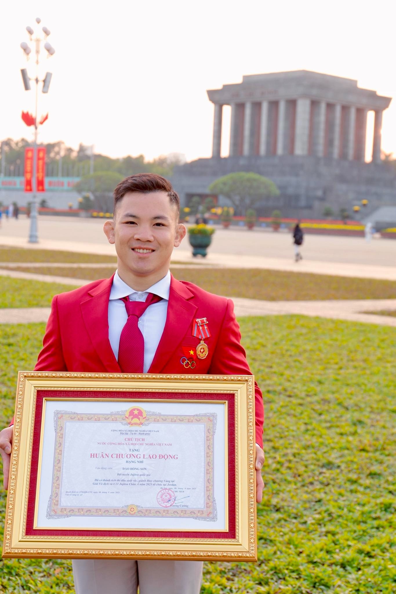 Không chỉ nhận bằng tốt nghiệp đại học, Đào Hồng Sơn còn "flex" nhận được Huân chương Lao động hạng nhì do Chủ tịch nước trao tặng. Nam vận động viên chia sẻ Huân chương Lao động chính là điều cao quý nhất mà mọi vận động viên đều hướng tới và mong muốn đạt được.