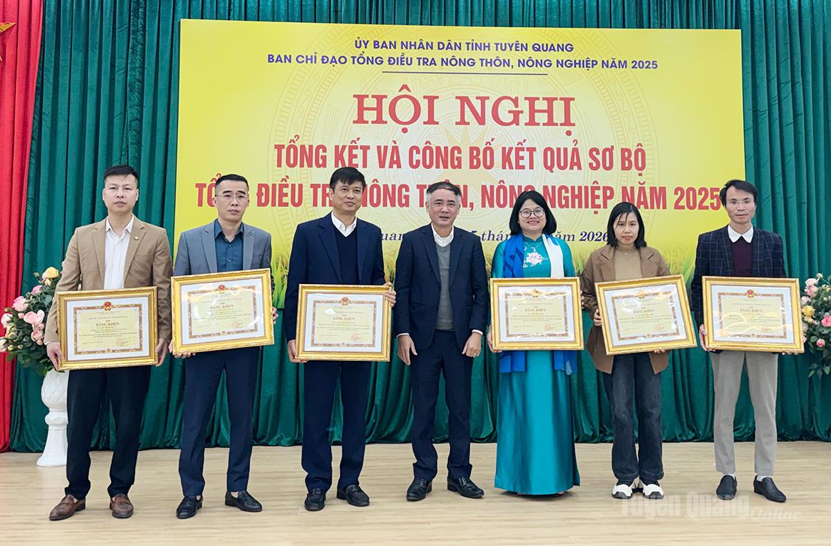 Nhân dịp này, Chủ tịch UBND tỉnh đã tặng Bằng khen cho 3 tập thể, 9 cá nhân; Thống kê tỉnh tặng giấy khen cho 27 tập thể và 210 cá nhân có thành tích xuất sắc trong cuộc tổng điều tra.