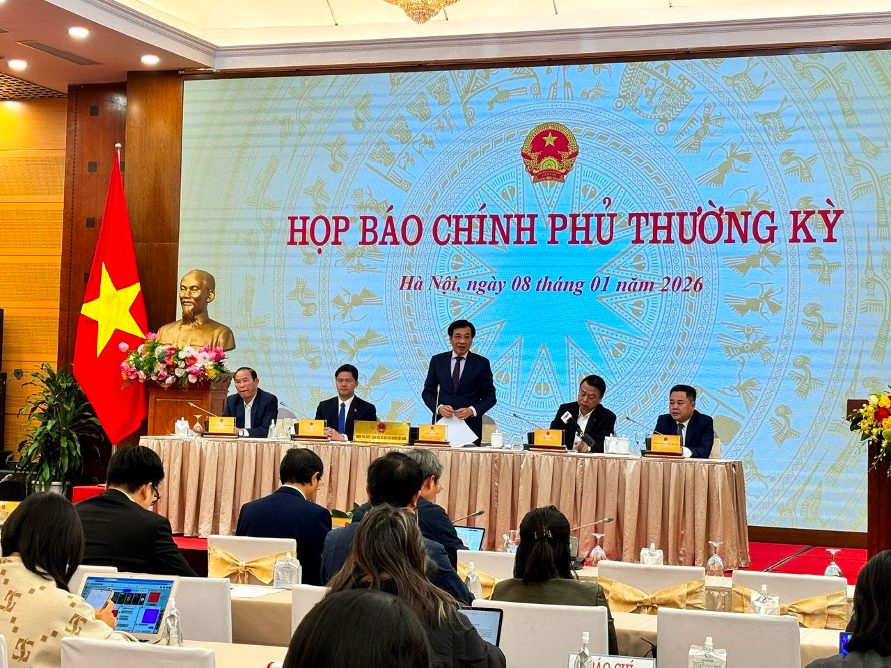 Thông tin tại Họp báo, Bộ trưởng Trần Văn Sơn cho biết, sáng cùng ngày, Chính phủ tổ chức Hội nghị trực tuyến toàn quốc tổng kết công tác năm 2025 và triển khai công tác năm 2026 của Chính phủ và chính quyền địa phương. Hội nghị thống nhất nhận định, năm 2025, chúng ta đã vượt toàn bộ 15/15 chỉ tiêu chủ yếu; đạt và vượt 22/26 chỉ tiêu kinh - tế xã hội chủ yếu giai đoạn 2021-2025; với 8 kết quả nổi bật: