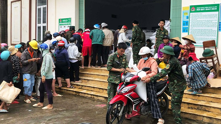 Song song với nhiệm vụ vệ sinh môi trường, lực lượng của Lữ đoàn đã phối hợp chặt chẽ với Ủy ban nhân dân phường Quy Nhơn Đông tổ chức vận chuyển và cấp phát gạo hỗ trợ cho các hộ dân bị ảnh hưởng, đặc biệt là các gia đình khó khăn, người già, hộ neo đơn. Việc cấp phát được triển khai đúng đối tượng, đúng số lượng, kịp thời, thể hiện tinh thần trách nhiệm, tình cảm quân-dân gắn bó.