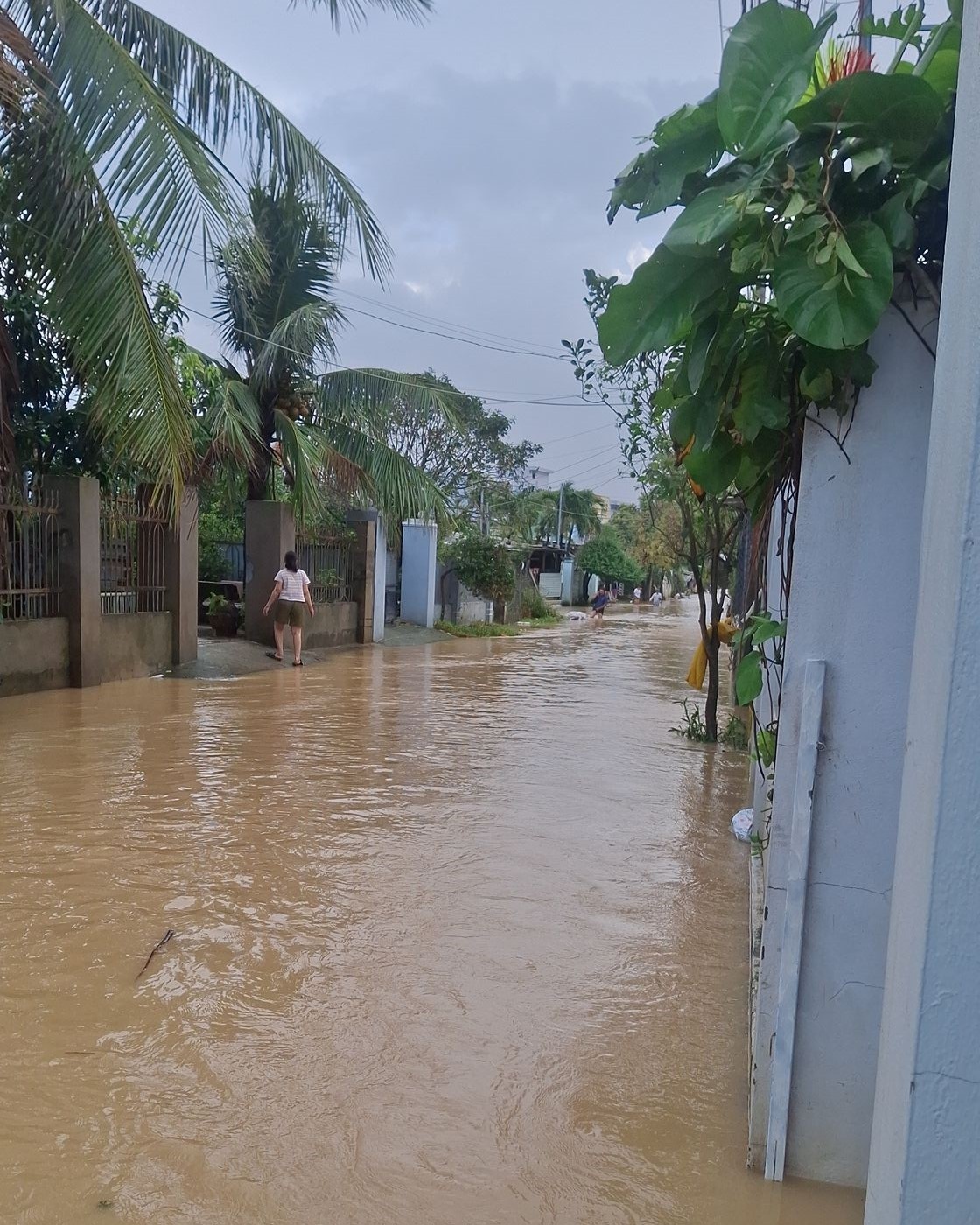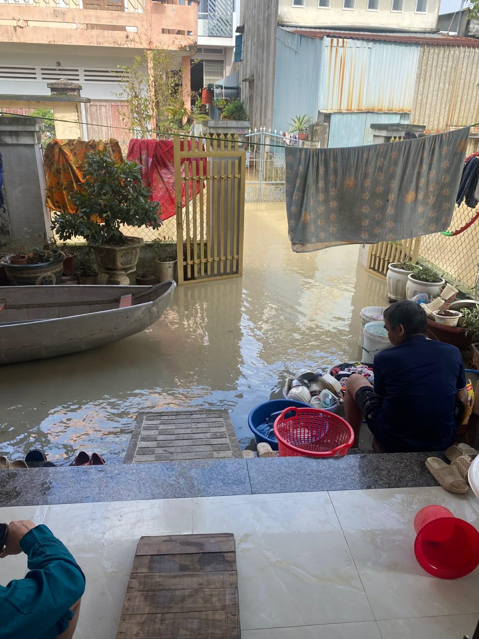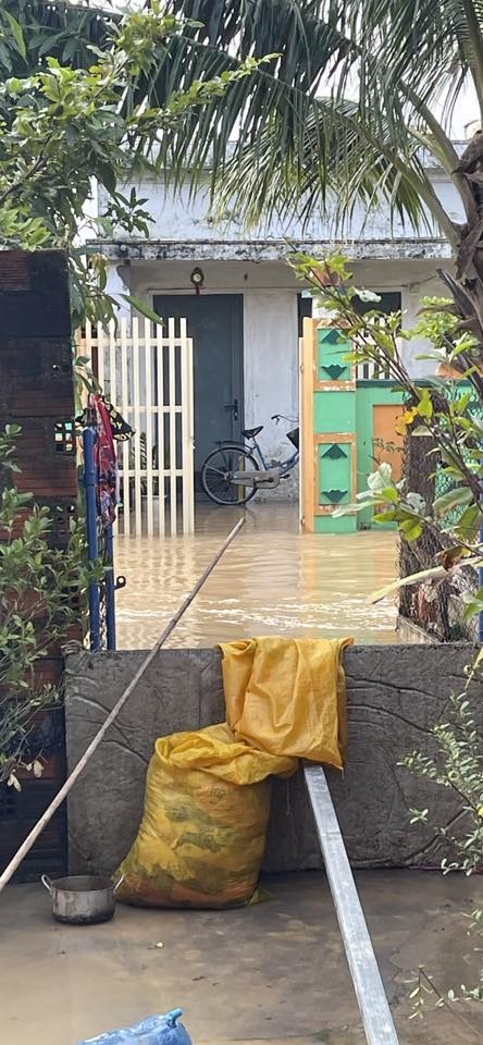 Sáng 24/11, tại khu vực phường Nhơn Bình cũ, nước vẫn ngập đến sân nhà, khiến sinh hoạt của người dân bị ảnh hưởng. Ảnh: Tôi là Dân Quy Nhơn.