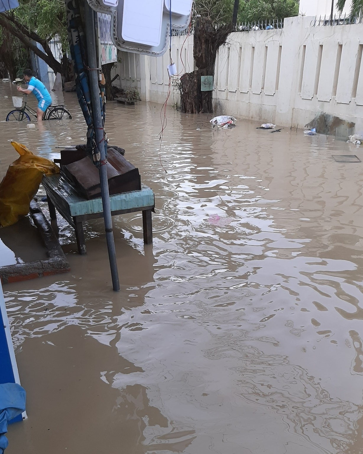 Trước đó chưa lâu, khắp các phường thuộc Quy Nhơn cũ vừa trải qua trận lụt kinh hoàng từ hôm 18-19/11. Nước vừa rút chưa lâu, người dân chưa kịp dọn dẹp xong lớp bùn non, nước đã dâng trở lại. Ảnh: Page Bình Định.