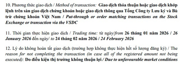 Ngay sau khi mua hụt số lượng cổ phiếu nêu trên, cùng ngày 24/2, Quỹ này tiếp tục đăng ký mua lại số lượng cổ phiếu nêu trên với giá trị tương đương 178.165.470.000 đồng.