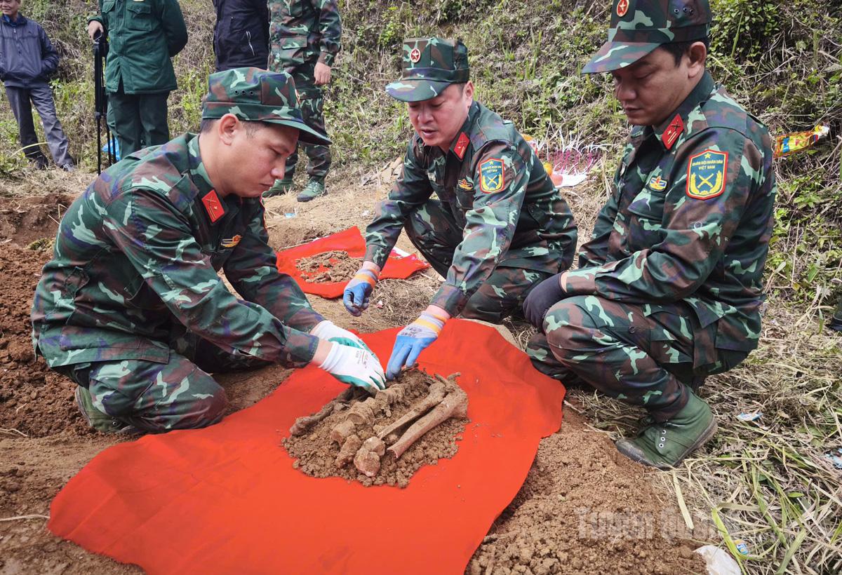 Cẩn trọng thu gom, phân loại hài cốt liệt sĩ tại thực địa.