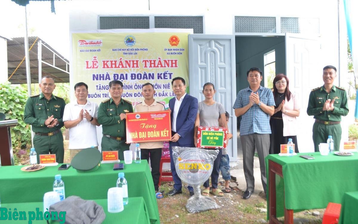 Ban Chỉ huy BĐBP tỉnh Đắk Lắk phối hợp với Báo Đại đoàn kết và chính quyền địa phương tổ chức Lễ khánh thành nhà Đại đoàn kết tặng gia đình ông Y Hớn Niê, có hoàn cảnh khó khăn về nhà ở tại buôn Trí, xã Buôn Đôn. Ảnh: Ngọc Lân