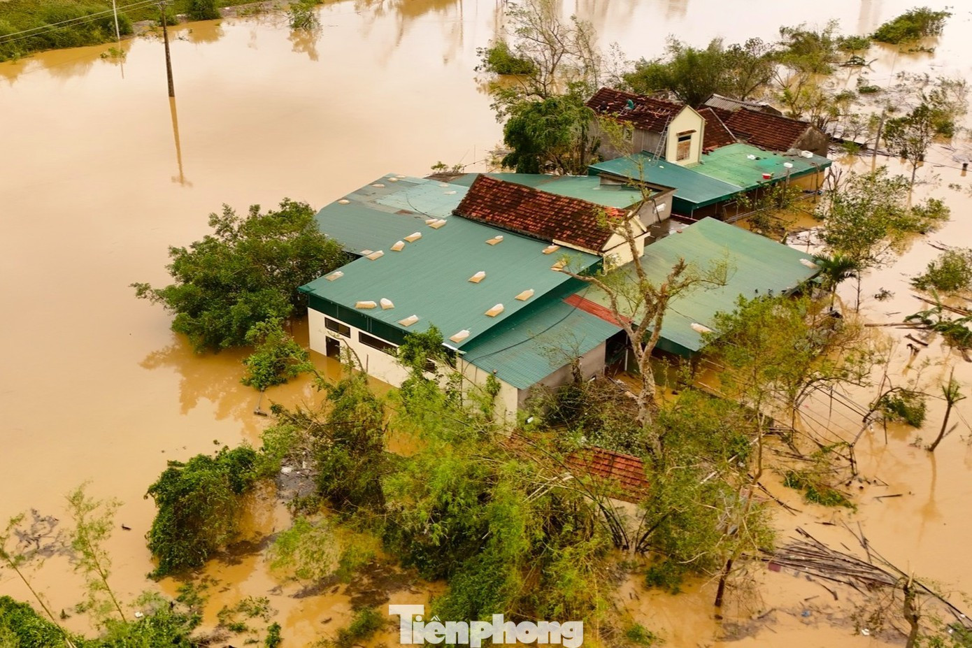 Sau bão số 10, nước từ thượng nguồn đổ về khiến mực nước sông Lam dâng cao, vùng hạ lưu Nghệ An chìm trong biển nước, hàng nghìn hộ dân phải sơ tán khẩn cấp. Ảnh: Thu Hiền