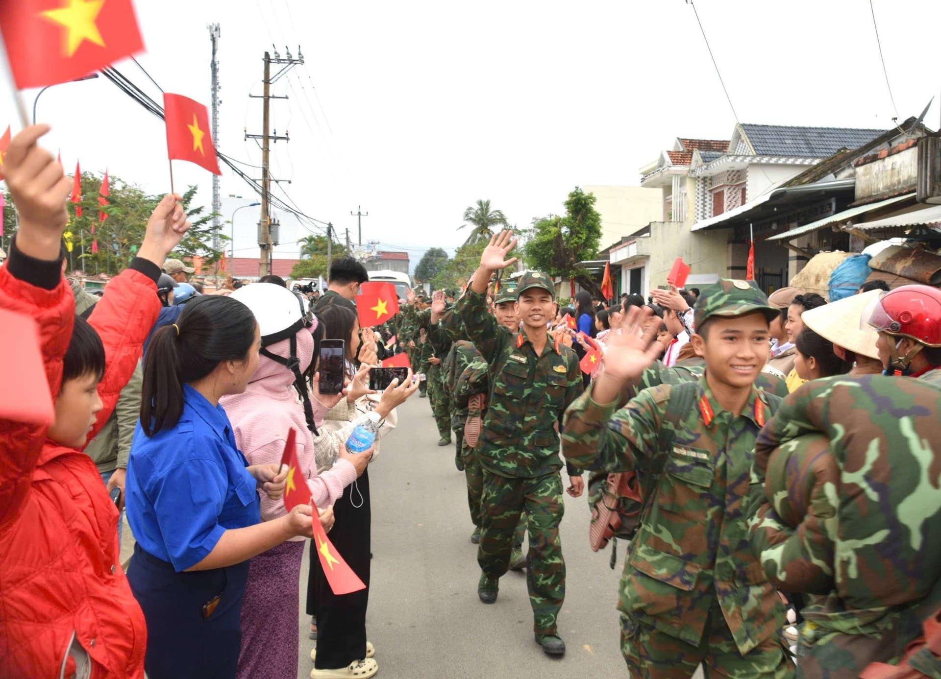 Những người lính đi trong vòng tay yêu thương của nhân dân. Ảnh: TH315.