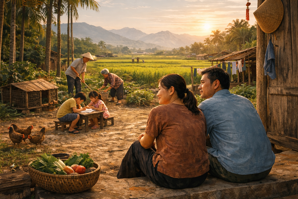 Sự đồng thuận ấy khiến quyết định ở lại quê của vợ chồng anh Biên không còn nặng nề, mà trở thành một khởi đầu mới, dù chậm hơn, nhưng chắc chắn và ấm áp. Với vợ chồng anh Biên, đó không phải là thất bại, mà là một lựa chọn: lựa chọn sống thật với mình, nhẹ gánh, không sĩ diện và bình yên.