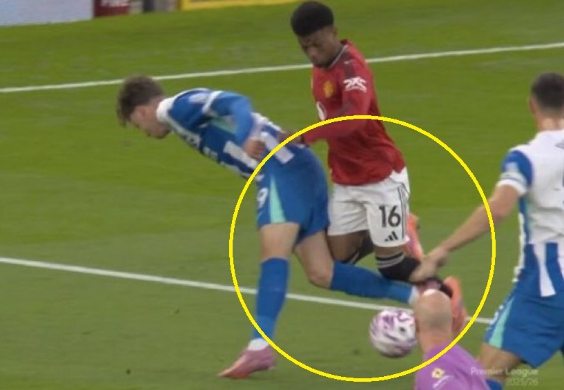 Video làm chậm cho thấy tiền vệ cánh bên phía Brighton đã có tác động để cản pha đi bóng của Amad. Tuy nhiên, cả trọng tài chính và tổ VAR đều im lặng.