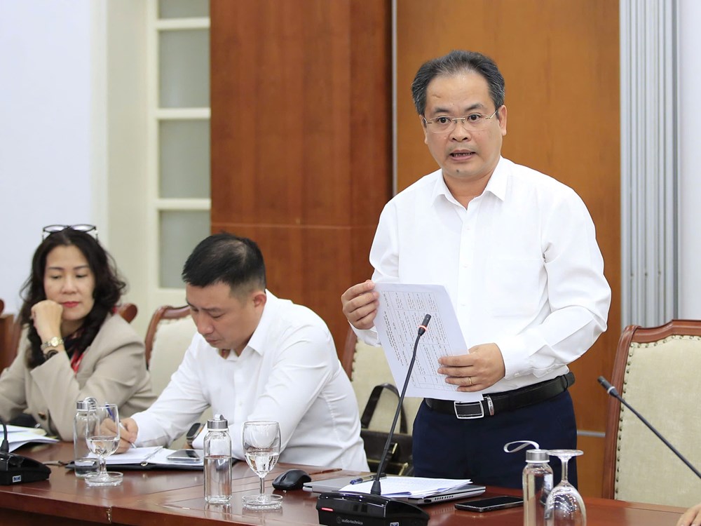 Ông Trần Mạnh Hùng, Phó cục trưởng Cục Văn hóa các dân tộc Việt Nam báo cáo về tiến độ chuẩn bị tổ chức Tuần “Đại đoàn kết các dân tộc - Di sản văn hóa Việt Nam” năm 2025 và “Ngày hội Văn hóa dân tộc Mường lần thứ II năm 2025”