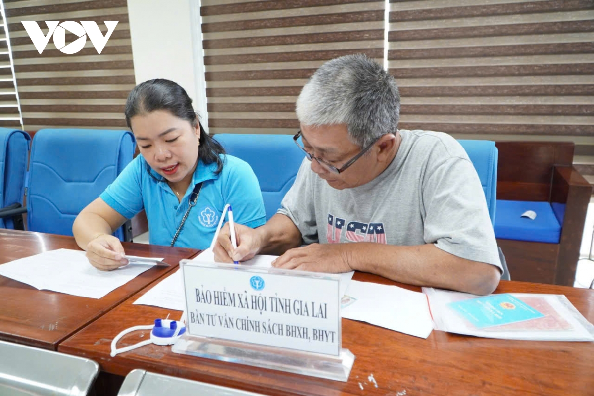Cán bộ BHXH Gia Lai giải quyết thủ tục cho người lao động.