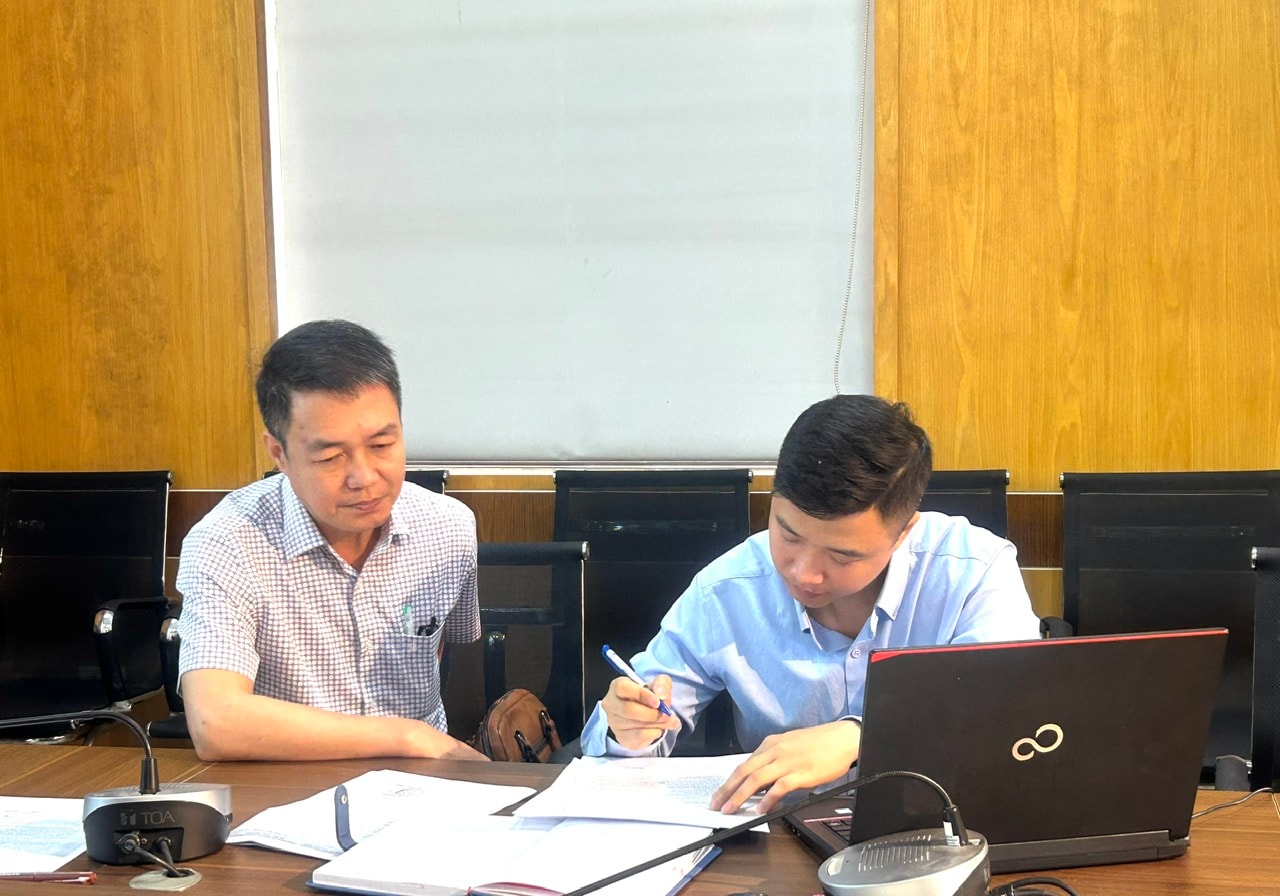 Cán bộ BHXH cơ sở Long Biên trực tiếp làm việc với các đơn vị. Ảnh: B.Duy