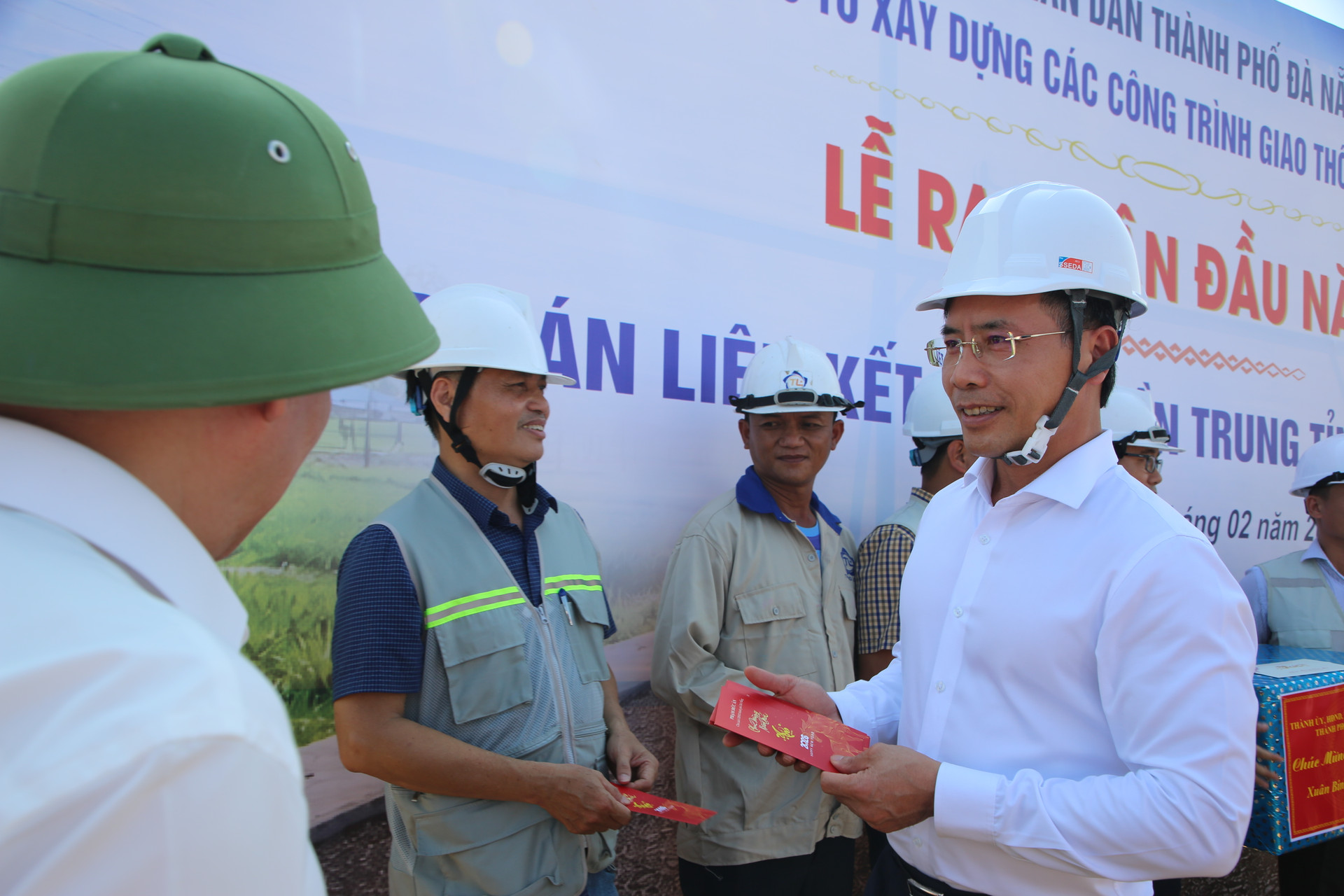 Thay mặt lãnh đạo thành phố, Chủ tịch UBND thành phố Phạm Đức Ấn thăm hỏi các đơn vị thi công trên công trường; lì xì đầu năm và động viên tập thể người lao động tiếp tục phát huy tinh thần trách nhiệm, bảo đảm an toàn, chất lượng và tiến độ triển khai dự án.