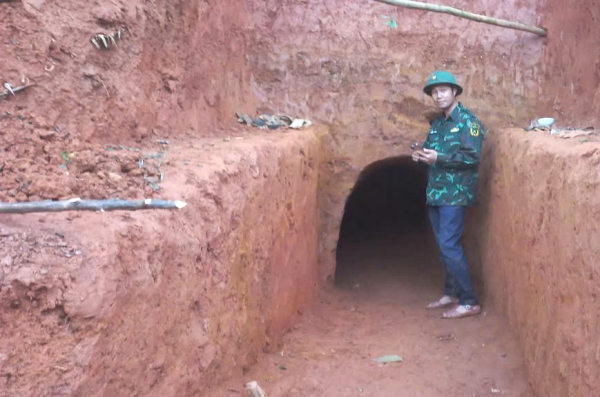 Một hầm vàng do các đối tượng khoét sâu để lấy đất đãi vàng sa khoáng.