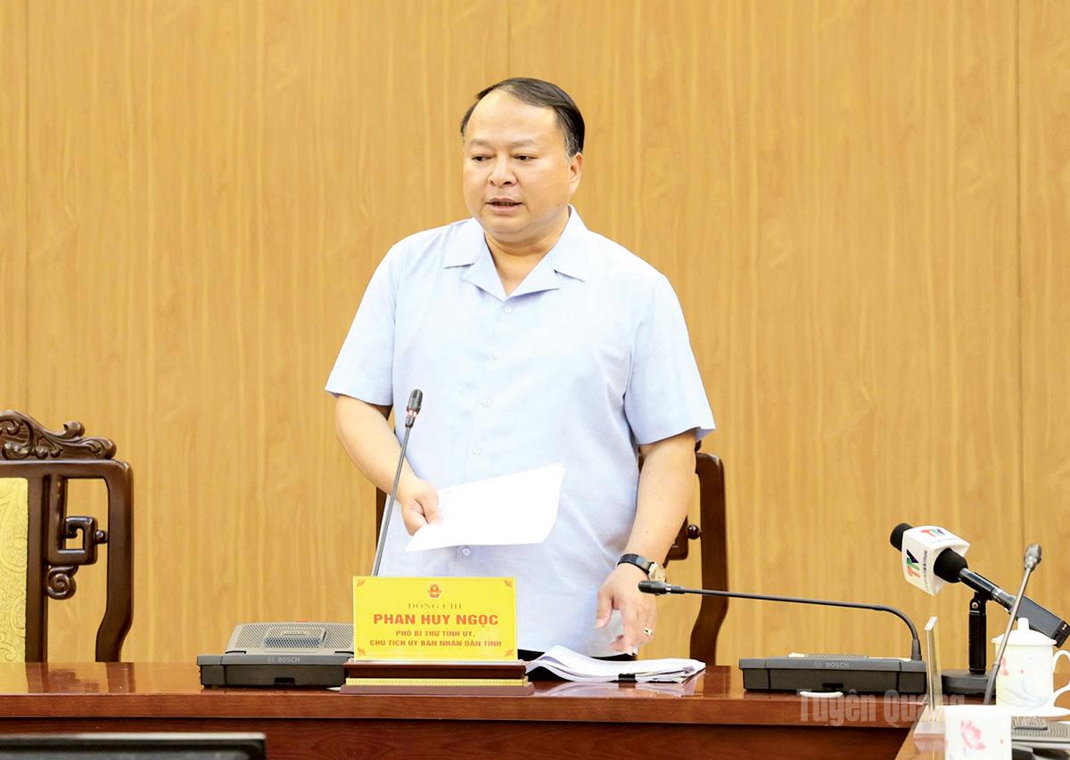 Đồng chí Phan Huy Ngọc, Phó Bí thư Tỉnh ủy, Chủ tịch UBND tỉnh phát biểu kết luận cuộc họp.