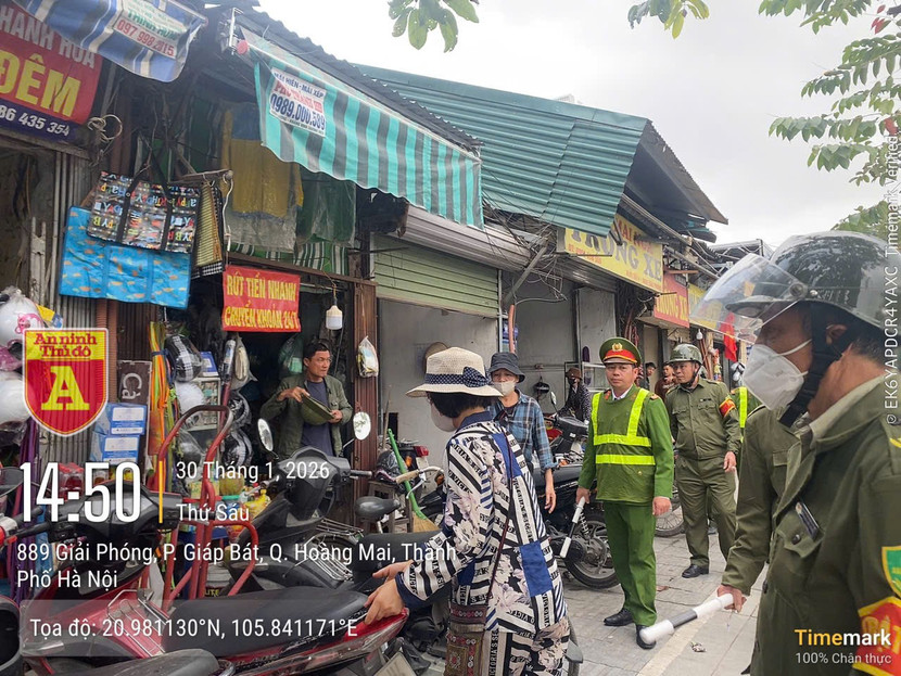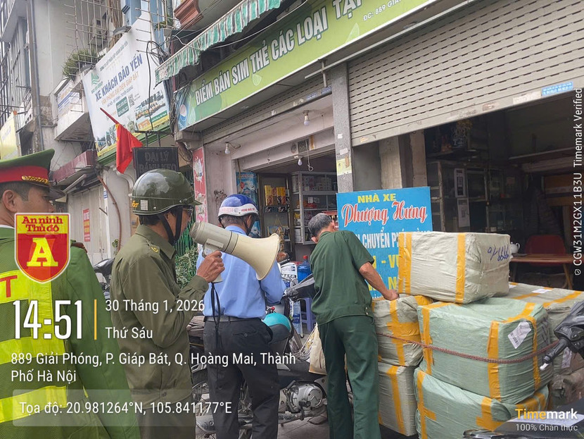 Trao đổi với phóng viên, Thiếu tá Hoàng Hoa Sơn, Tổ trưởng tổ Cảnh sát trật tự, Công an phường Hoàng Mai cho biết: Tại bến xe Giáp Bát, lực lượng Công an phường luôn duy trì trực chốt 24/24h để kiểm tra, xử lý vi phạm. Thống kê từ ngày 10/12/2025 đến nay, Công an phường đã xử lý 40 trường hợp vi phạm vỉa hè lòng đường để kinh doanh, 210 trường hợp hàng rong xe đẩy vi phạm trên địa bàn phường. Dù lực lượng khá mỏng, nhưng chúng tôi luôn duy trì tuần tra kiểm soát từ 6h-22h, song song đó là một tổ tuần tra kiểm soát ban đêm. Mục tiêu không chỉ là xử phạt mà là tạo thói quen chấp hành pháp luật cho người dân và các hộ kinh doanh.