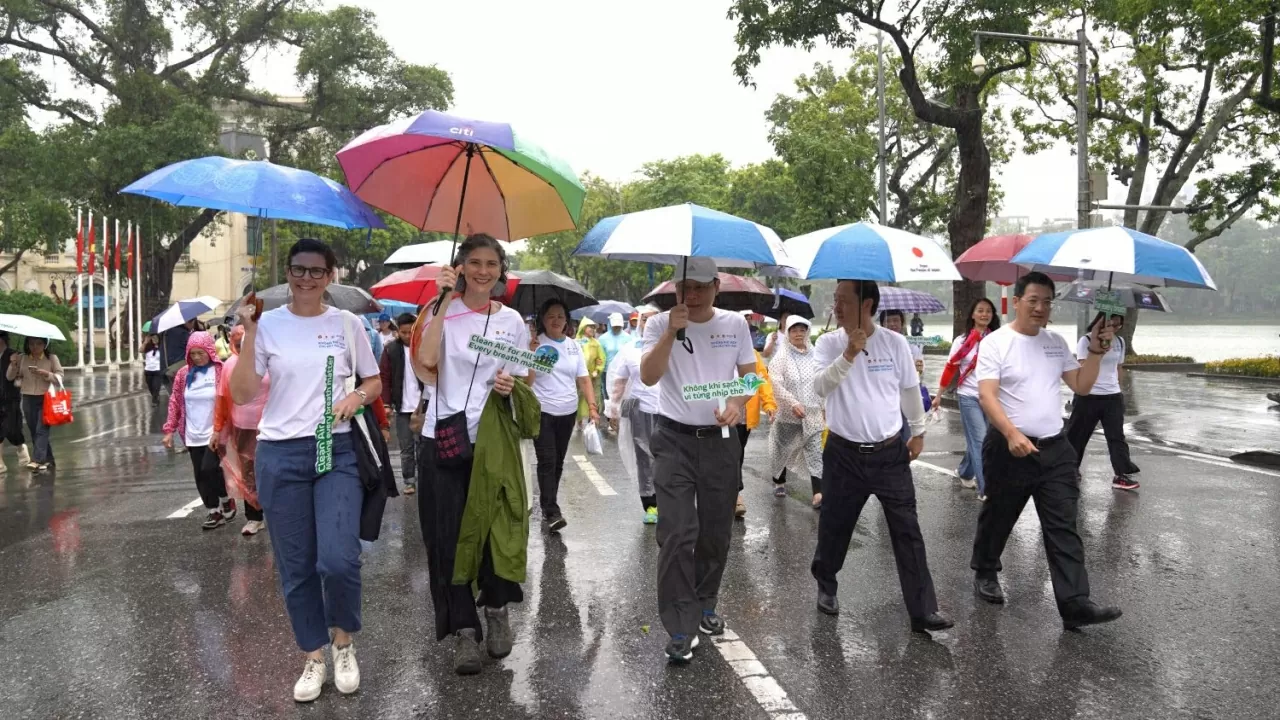 Hoạt động đi bộ hưởng ứng phong trào chung tay vì bầu trời xanh. (Ảnh: Trà My)
