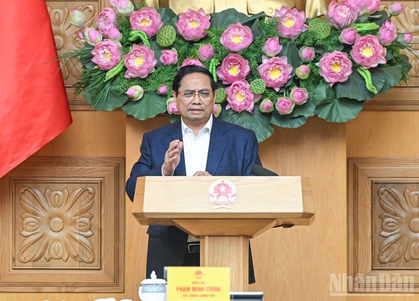 Thủ tướng Chính phủ Phạm Minh Chính chủ trì cuộc họp rà soát, đẩy nhanh tiến độ triển khai "Chiến dịch Quang Trung" thần tốc xây dựng lại, sửa chữa nhà cửa cho người dân vùng bị thiên tai. (ảnh: Báo Nhân dân)