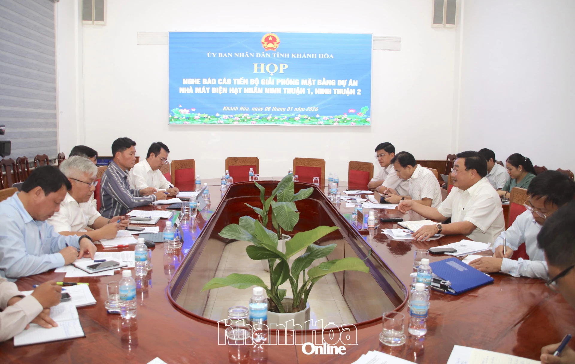 Chiều 6-1, đồng chí Trịnh Minh Hoàng - Phó Chủ tịch UBND tỉnh Khánh Hòa chủ trì cuộc họp nghe các sở, ngành, địa phương liên quan báo cáo tiến độ giải phóng mặt bằng các dự án Nhà máy Điện hạt nhân Ninh Thuận 1 và Ninh Thuận 2.